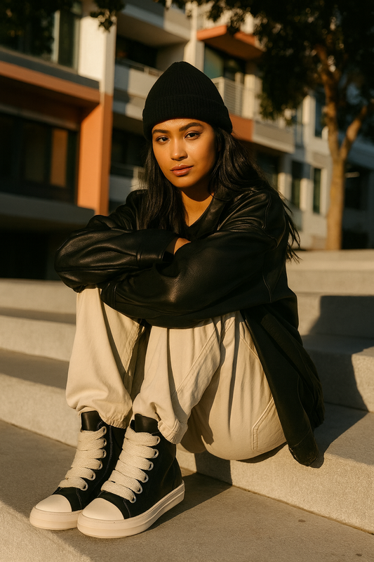 Explore the urban wilderness in our First Class black high top sneakers. Designed for maximum...