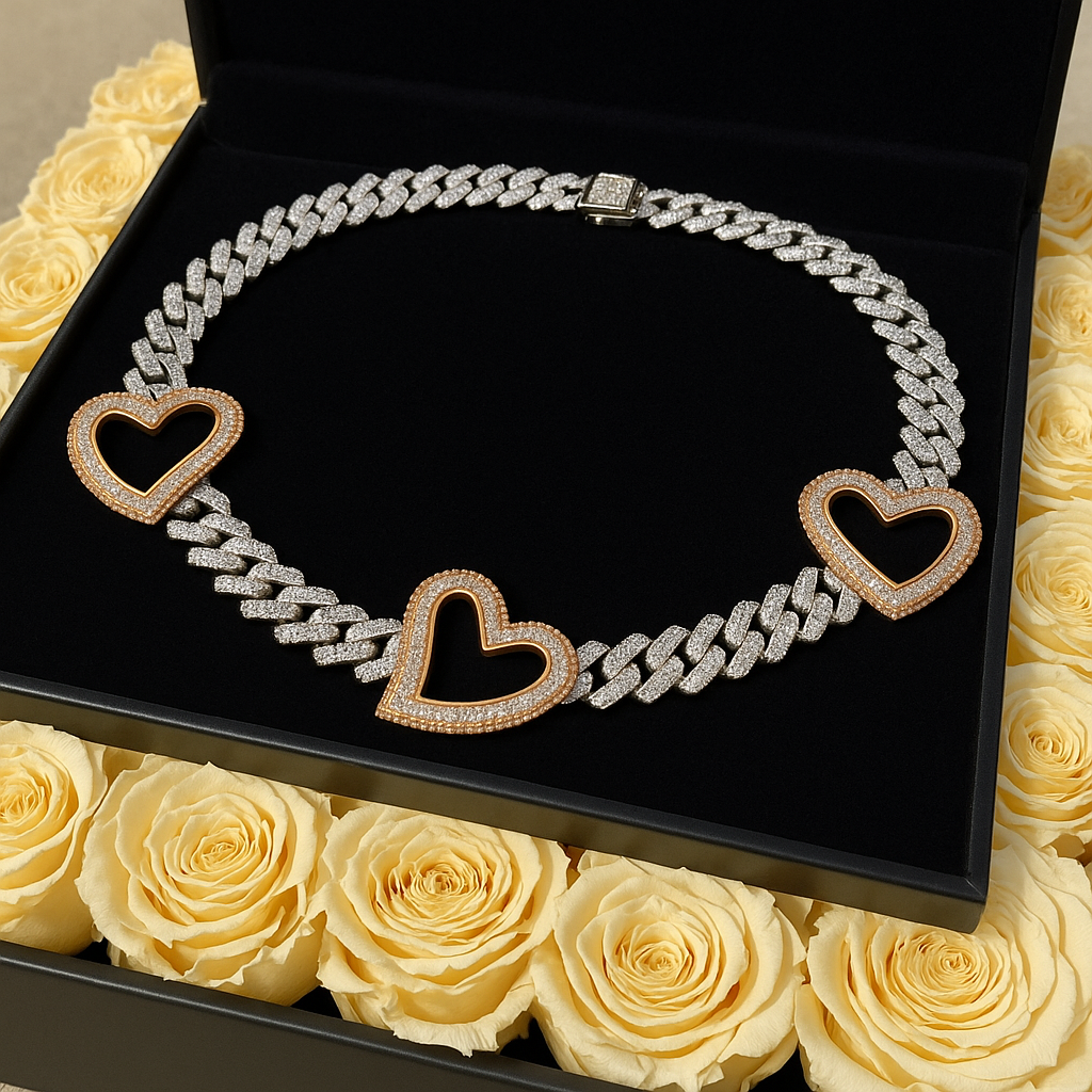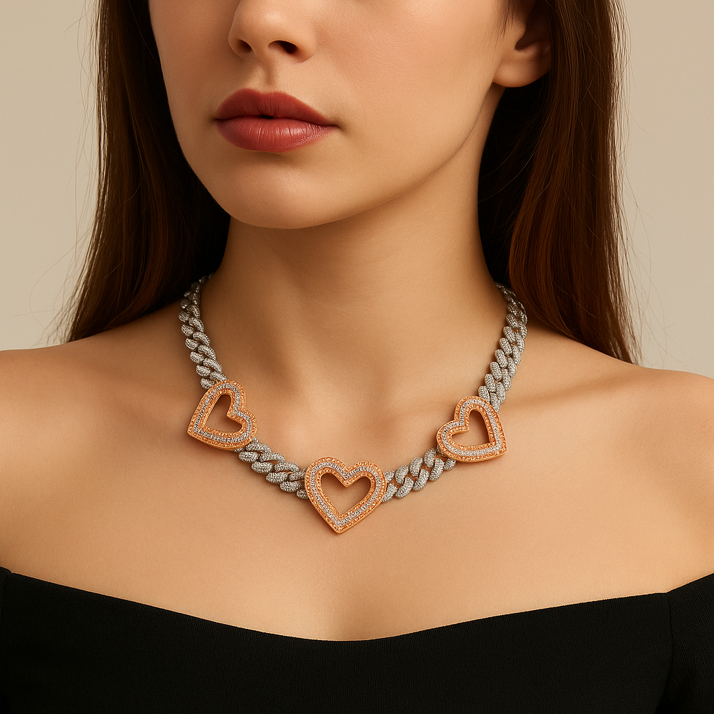 Introducing our Three-Way Heart Cubic Zirconia Necklace – a symbol of elegance-and love. This stunning necklace features three interlocking hearts, each adorned with sparkling cubic zirconia, creating a timeless and meaningful piece.